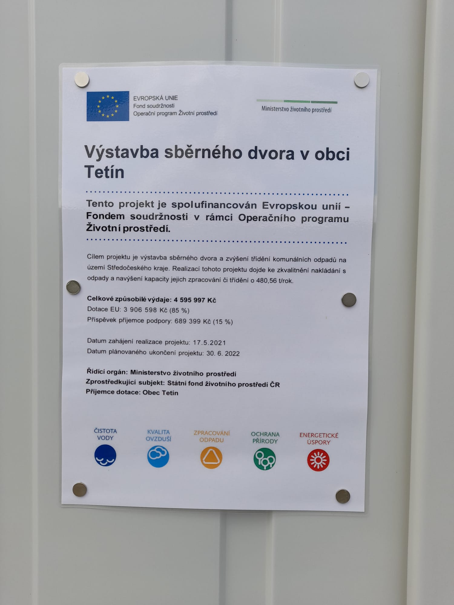Výstavba sběrného dvora v obci Tetín - financováno z dotace MŽP