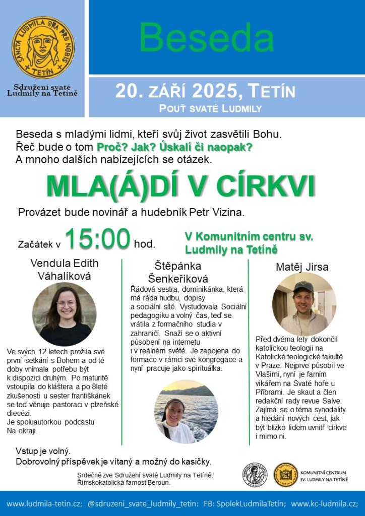 Sdružení svaté Ludmily na Tetíně zve na Besedu, viz. leták