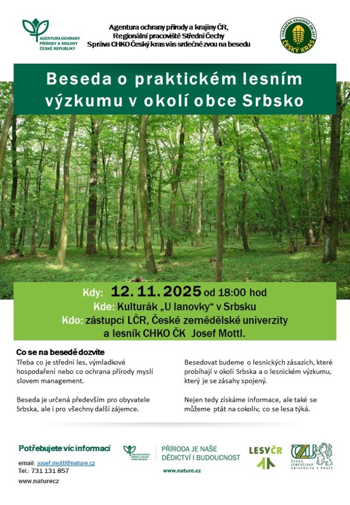 12.11.2025 od 18:00 hod, v obci Srbsko proběhne beseda o lesním výzkumu