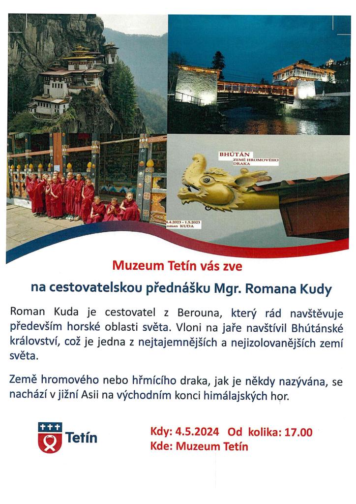 Muzeum Tetín vás zve na cestovatelskou přednášku Mgr. Romana Kudy dne 4.5.2024 od 17:00 v Muzeum Tetín.