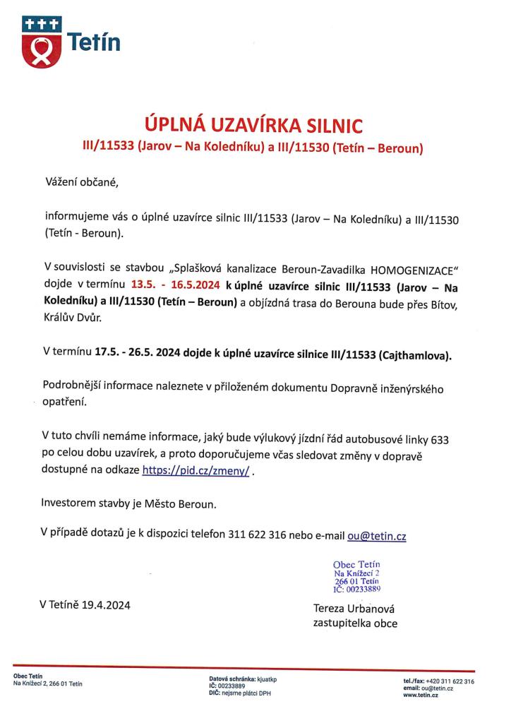Úplná uzavírka silnice - DIO viz příloha