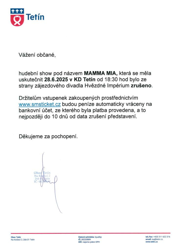 INFORMACE O ZRUŠENÍ HUDEBNÍ SHOW