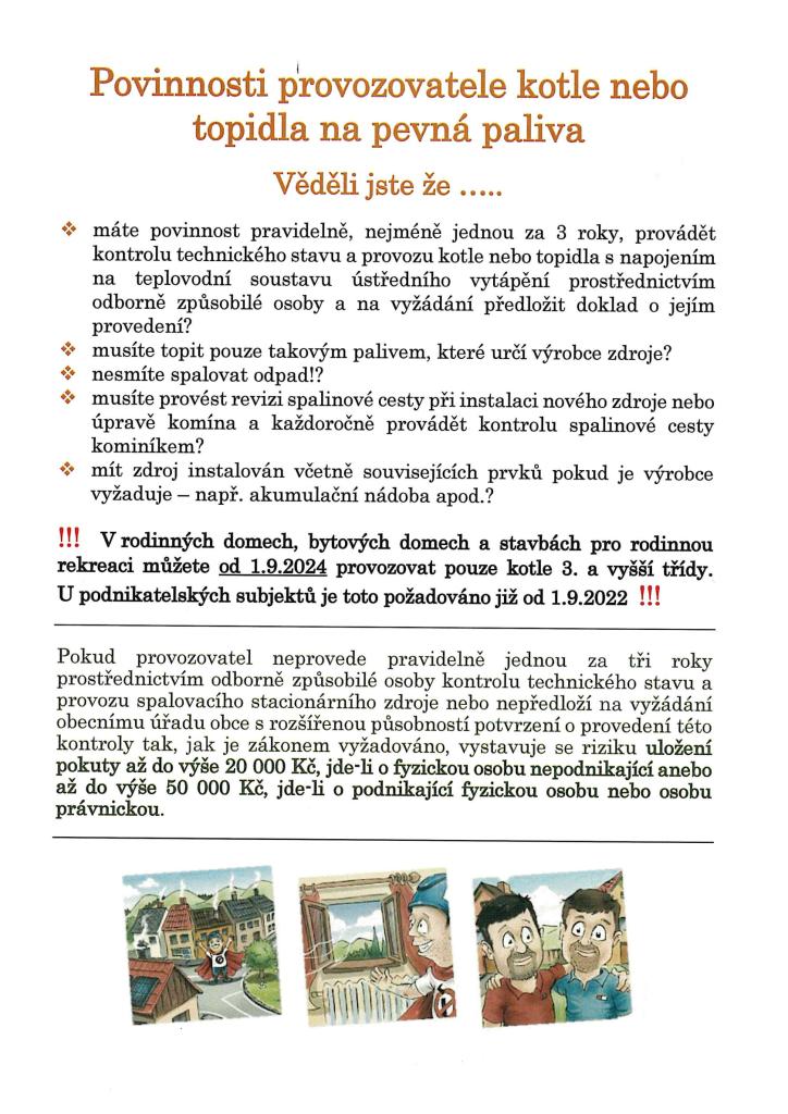 Povinnosti provozovatele kotle nebo topidla na pevná paliva.