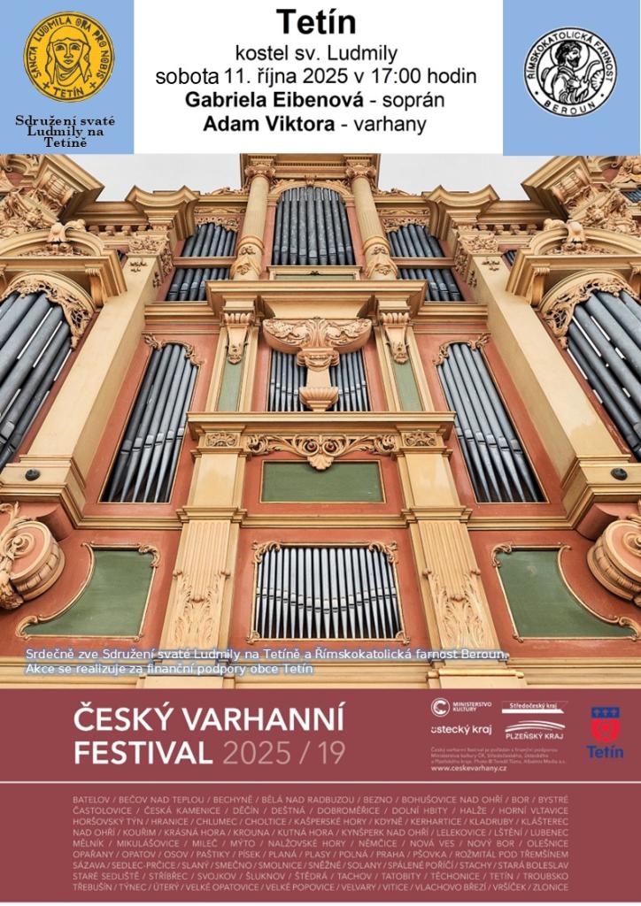 Přijďte na koncert v kostele sv. Ludmily, který se koná v sobotu 11. října 2025 v 17:00 hodin. Vystoupí sopranistka Gabriela Eibenová a varhaník Adam Viktora v rámci Českého varhanního festivalu 2025.