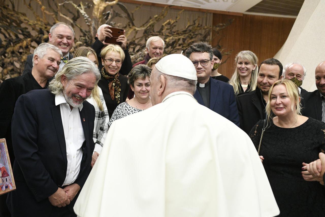 Druhý den naší malou skupinu vzal velvyslanec Kolaja na audienci k papeži do sálu Pavla VI. Kde se shromáždilo několik tisíc poutníků. Celá úvodní část audience trvala přes hodinu a přiznám se, že skutečnost, že jsme seděli až v několikáté řadě nedávala moc naději, že se s Františkem osobně setkáme. Naštěstí velvyslanec Kolaja domluvil fotografování naší skupinky s papežem. Přišel pokyn a my jsme již směřovali do přední části sálu, kde jsme se seřadili. Neuběhla ani chvilka a už k nám Svatý Otec kráčel. Naše skupinka začala spontánně radostí tleskat. Nastalo představování, a nakonec jsem tedy měl i já možnost papeži připomenou sv. Ludmilu, Tetín a Národní pouť, na kterou vyslal Kardinála Schönborna. Zajímavé bylo, že jsem začal mluvit anglicky, ale František, když zaslechl jméno Schönborn, pokračoval v němčině a v tomto jazyce jsme krátký rozhovor i dokončili. Je úžasné, jak je schopen v tak pokročilém věku mluvit s tolika lidmi v různých jazycích. Setkání samé byl úžasný zážitek, na který celý život nezapomenu. Je mi ale trochu líto, že se mnou na audienci nemohli být ty tisíce dobrovolníků, kteří se na Roku sv. Ludmily v Česku a dalších zemích podíleli. Patří jim velký dík.