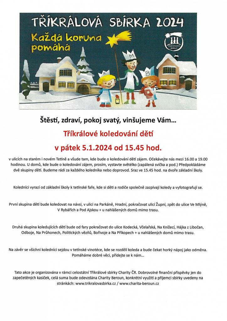 Tříkrálové koledování dětí 5.1.2024 od 15:45 hod